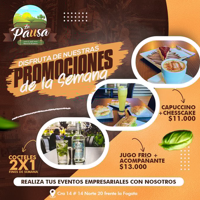 🌟 ¡Descubre un mundo de sabores en La Pausa Café esta semana! 🌟 Desde deliciosos capuccinos hasta cheesecakes irresistibles, tenemos todo lo que necesitas para satisfacer tus antojos. 😋☕🍰 👉 ¡No te pierdas nuestras promociones exclusivas de la semana! 👈